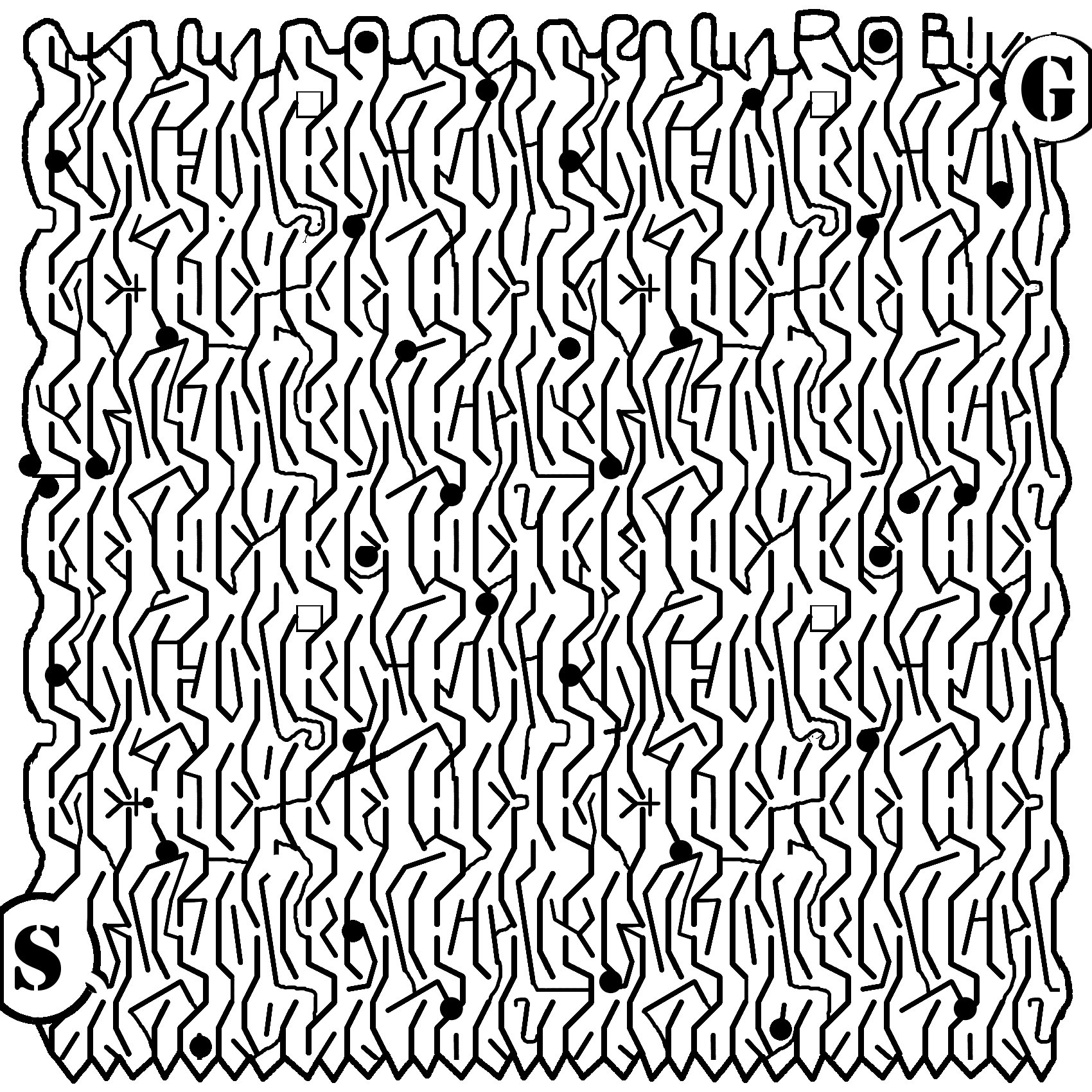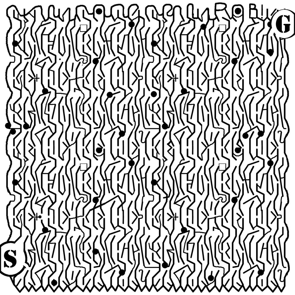 I used gimp again for this maze, wanting to use slight variations of repeated patterns to make a complex-looking maze actually be a bit complex.